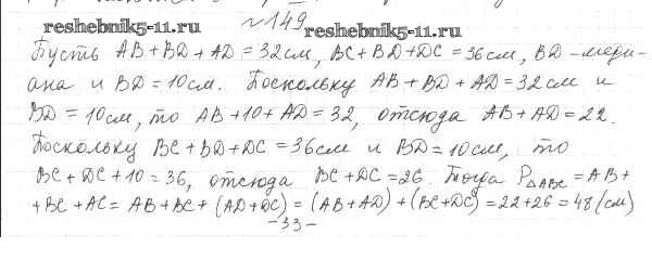 Готовая домашняя работа с ответами по Геометрии за 7 класс Мерзляк, Полонский, Якир Учебник Алгоритм успеха Вентана-граф 2017 ФГОС - §7. Равные треугольники. Высота, медиана, биссектриса треугольника 149
