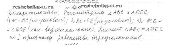 Готовая домашняя работа с ответами по Геометрии за 7 класс Мерзляк, Полонский, Якир Учебник Алгоритм успеха Вентана-граф 2017 ФГОС - §8. Первый и второй признак равенства треугольников 160