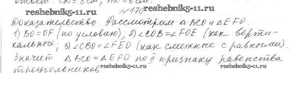 Готовая домашняя работа с ответами по Геометрии за 7 класс Мерзляк, Полонский, Якир Учебник Алгоритм успеха Вентана-граф 2017 ФГОС - §8. Первый и второй признак равенства треугольников 170