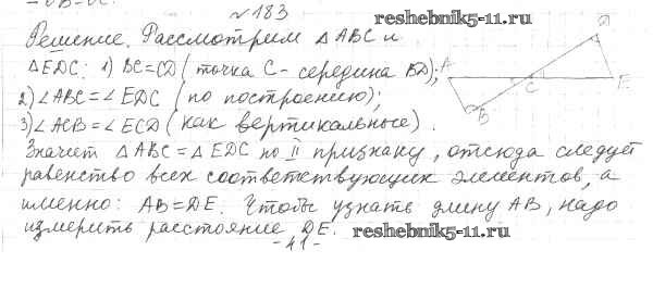 Готовая домашняя работа с ответами по Геометрии за 7 класс Мерзляк, Полонский, Якир Учебник Алгоритм успеха Вентана-граф 2017 ФГОС - §8. Первый и второй признак равенства треугольников 183