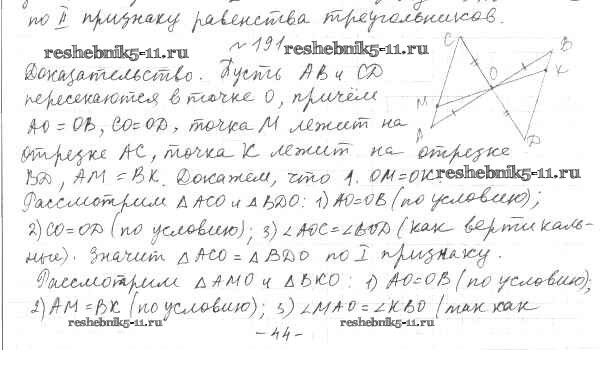 Готовая домашняя работа с ответами по Геометрии за 7 класс Мерзляк, Полонский, Якир Учебник Алгоритм успеха Вентана-граф 2017 ФГОС - §8. Первый и второй признак равенства треугольников 191
