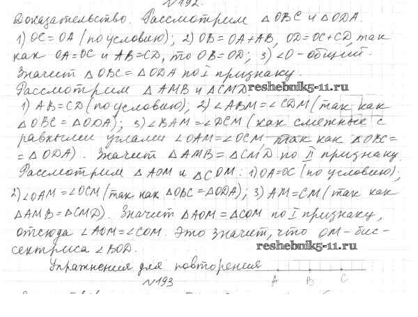 Готовая домашняя работа с ответами по Геометрии за 7 класс Мерзляк, Полонский, Якир Учебник Алгоритм успеха Вентана-граф 2017 ФГОС - §8. Первый и второй признак равенства треугольников 192