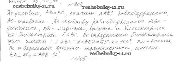 Готовая домашняя работа с ответами по Геометрии за 7 класс Мерзляк, Полонский, Якир Учебник Алгоритм успеха Вентана-граф 2017 ФГОС - §9. Равнобедренный треугольник и его свойства 204