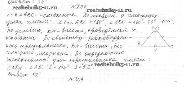 Готовая домашняя работа с ответами по Геометрии за 7 класс Мерзляк, Полонский, Якир Учебник Алгоритм успеха Вентана-граф 2017 ФГОС - §9. Равнобедренный треугольник и его свойства 208
