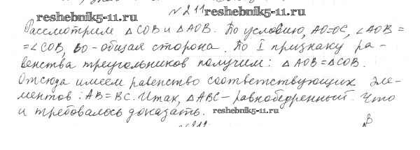 Готовая домашняя работа с ответами по Геометрии за 7 класс Мерзляк, Полонский, Якир Учебник Алгоритм успеха Вентана-граф 2017 ФГОС - §9. Равнобедренный треугольник и его свойства 211