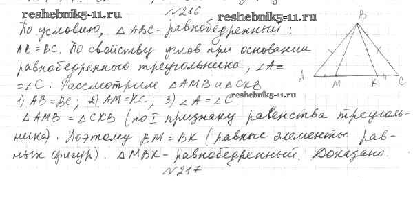 Готовая домашняя работа с ответами по Геометрии за 7 класс Мерзляк, Полонский, Якир Учебник Алгоритм успеха Вентана-граф 2017 ФГОС - §9. Равнобедренный треугольник и его свойства 216