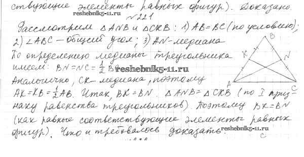 Готовая домашняя работа с ответами по Геометрии за 7 класс Мерзляк, Полонский, Якир Учебник Алгоритм успеха Вентана-граф 2017 ФГОС - §9. Равнобедренный треугольник и его свойства 221