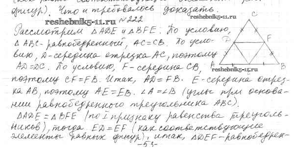 Готовая домашняя работа с ответами по Геометрии за 7 класс Мерзляк, Полонский, Якир Учебник Алгоритм успеха Вентана-граф 2017 ФГОС - §9. Равнобедренный треугольник и его свойства 222
