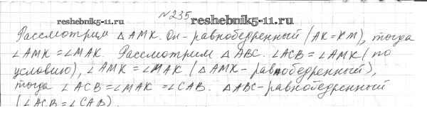 Готовая домашняя работа с ответами по Геометрии за 7 класс Мерзляк, Полонский, Якир Учебник Алгоритм успеха Вентана-граф 2017 ФГОС - §10. Признаки равнобедренного треугольника 235