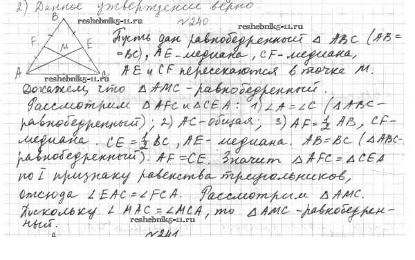 Готовая домашняя работа с ответами по Геометрии за 7 класс Мерзляк, Полонский, Якир Учебник Алгоритм успеха Вентана-граф 2017 ФГОС - §10. Признаки равнобедренного треугольника 240