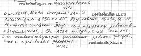 Готовая домашняя работа с ответами по Геометрии за 7 класс Мерзляк, Полонский, Якир Учебник Алгоритм успеха Вентана-граф 2017 ФГОС - §11. Третий признак равенства треугольников 252