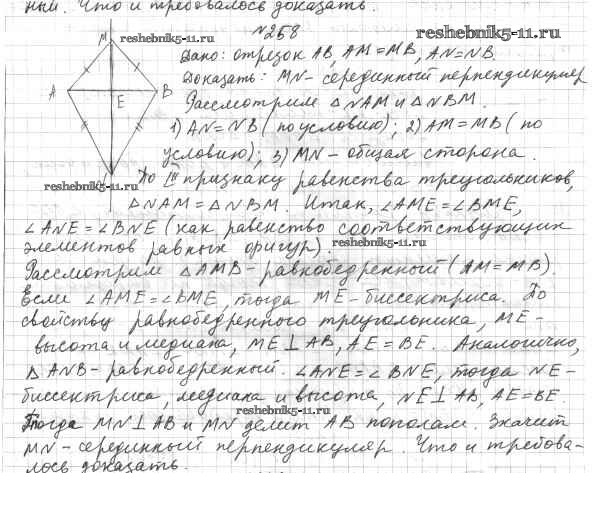 Готовая домашняя работа с ответами по Геометрии за 7 класс Мерзляк, Полонский, Якир Учебник Алгоритм успеха Вентана-граф 2017 ФГОС - §11. Третий признак равенства треугольников 258