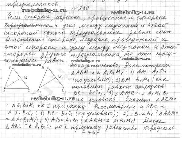 Готовая домашняя работа с ответами по Геометрии за 7 класс Мерзляк, Полонский, Якир Учебник Алгоритм успеха Вентана-граф 2017 ФГОС - §12. Теоремы 280