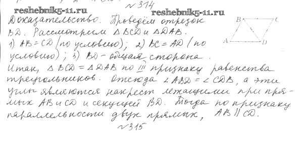 Готовая домашняя работа с ответами по Геометрии за 7 класс Мерзляк, Полонский, Якир Учебник Алгоритм успеха Вентана-граф 2017 ФГОС - §14. Признаки параллельности двух прямых 314