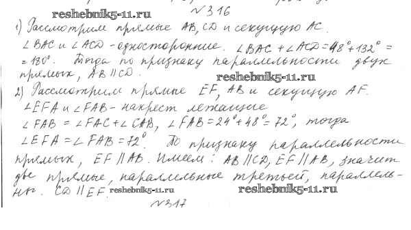 Готовая домашняя работа с ответами по Геометрии за 7 класс Мерзляк, Полонский, Якир Учебник Алгоритм успеха Вентана-граф 2017 ФГОС - §14. Признаки параллельности двух прямых 316