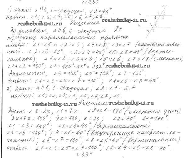 Готовая домашняя работа с ответами по Геометрии за 7 класс Мерзляк, Полонский, Якир Учебник Алгоритм успеха Вентана-граф 2017 ФГОС - §15. Свойства параллельных прямых 330