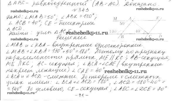 Готовая домашняя работа с ответами по Геометрии за 7 класс Мерзляк, Полонский, Якир Учебник Алгоритм успеха Вентана-граф 2017 ФГОС - §15. Свойства параллельных прямых 343