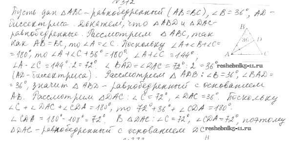 Готовая домашняя работа с ответами по Геометрии за 7 класс Мерзляк, Полонский, Якир Учебник Алгоритм успеха Вентана-граф 2017 ФГОС - §16. Сумма углов треугольника 372