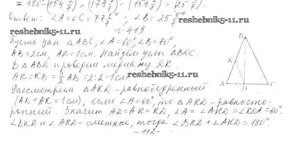 Готовая домашняя работа с ответами по Геометрии за 7 класс Мерзляк, Полонский, Якир Учебник Алгоритм успеха Вентана-граф 2017 ФГОС - §16. Сумма углов треугольника 419
