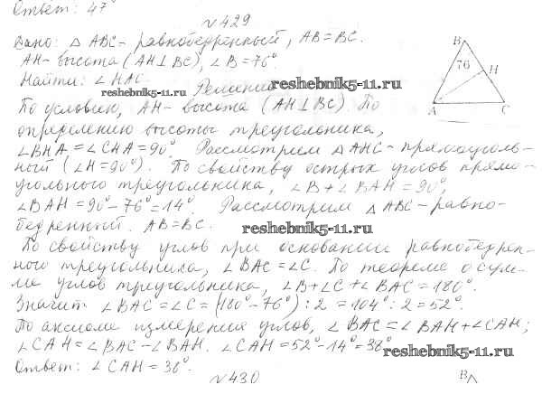Готовая домашняя работа с ответами по Геометрии за 7 класс Мерзляк, Полонский, Якир Учебник Алгоритм успеха Вентана-граф 2017 ФГОС - §17. Прямоугольный треугольник 429