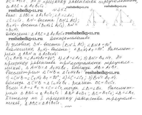 Готовая домашняя работа с ответами по Геометрии за 7 класс Мерзляк, Полонский, Якир Учебник Алгоритм успеха Вентана-граф 2017 ФГОС - §17. Прямоугольный треугольник 452