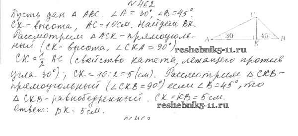 Готовая домашняя работа с ответами по Геометрии за 7 класс Мерзляк, Полонский, Якир Учебник Алгоритм успеха Вентана-граф 2017 ФГОС - §18. Свойства прямоугольного треугольника 462