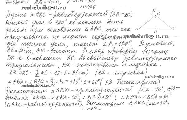 Готовая домашняя работа с ответами по Геометрии за 7 класс Мерзляк, Полонский, Якир Учебник Алгоритм успеха Вентана-граф 2017 ФГОС - §18. Свойства прямоугольного треугольника 466