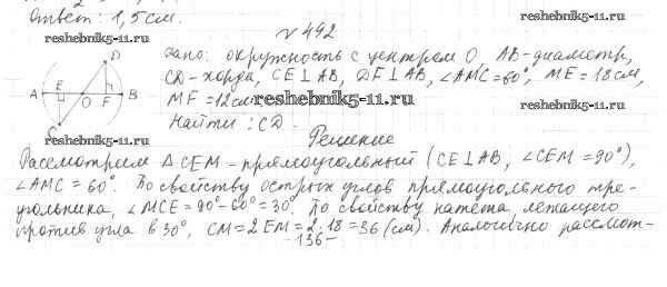 Готовая домашняя работа с ответами по Геометрии за 7 класс Мерзляк, Полонский, Якир Учебник Алгоритм успеха Вентана-граф 2017 ФГОС - §19. Геометрическое место точек. Окружность и круг 492