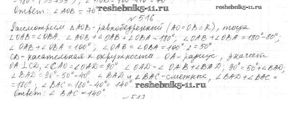 Готовая домашняя работа с ответами по Геометрии за 7 класс Мерзляк, Полонский, Якир Учебник Алгоритм успеха Вентана-граф 2017 ФГОС - §20. Некоторые свойства окружности. Касательная к окружности 516