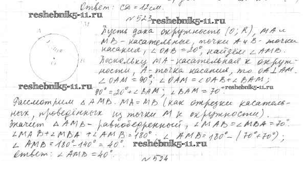 Готовая домашняя работа с ответами по Геометрии за 7 класс Мерзляк, Полонский, Якир Учебник Алгоритм успеха Вентана-граф 2017 ФГОС - §20. Некоторые свойства окружности. Касательная к окружности 523