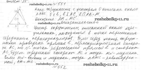 Готовая домашняя работа с ответами по Геометрии за 7 класс Мерзляк, Полонский, Якир Учебник Алгоритм успеха Вентана-граф 2017 ФГОС - §21. Описанная и вписанная окружности треугольника 551