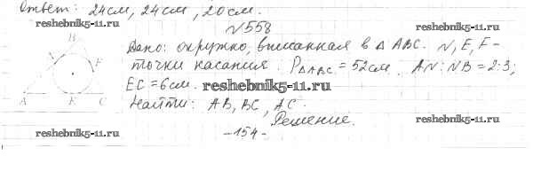Готовая домашняя работа с ответами по Геометрии за 7 класс Мерзляк, Полонский, Якир Учебник Алгоритм успеха Вентана-граф 2017 ФГОС - §21. Описанная и вписанная окружности треугольника 558