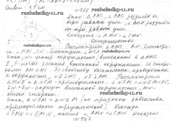 Готовая домашняя работа с ответами по Геометрии за 7 класс Мерзляк, Полонский, Якир Учебник Алгоритм успеха Вентана-граф 2017 ФГОС - §21. Описанная и вписанная окружности треугольника 566