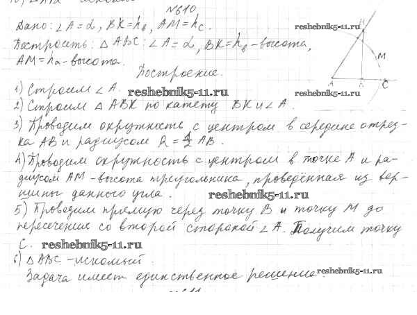 Готовая домашняя работа с ответами по Геометрии за 7 класс Мерзляк, Полонский, Якир Учебник Алгоритм успеха Вентана-граф 2017 ФГОС - §22. Задачи на построение 610