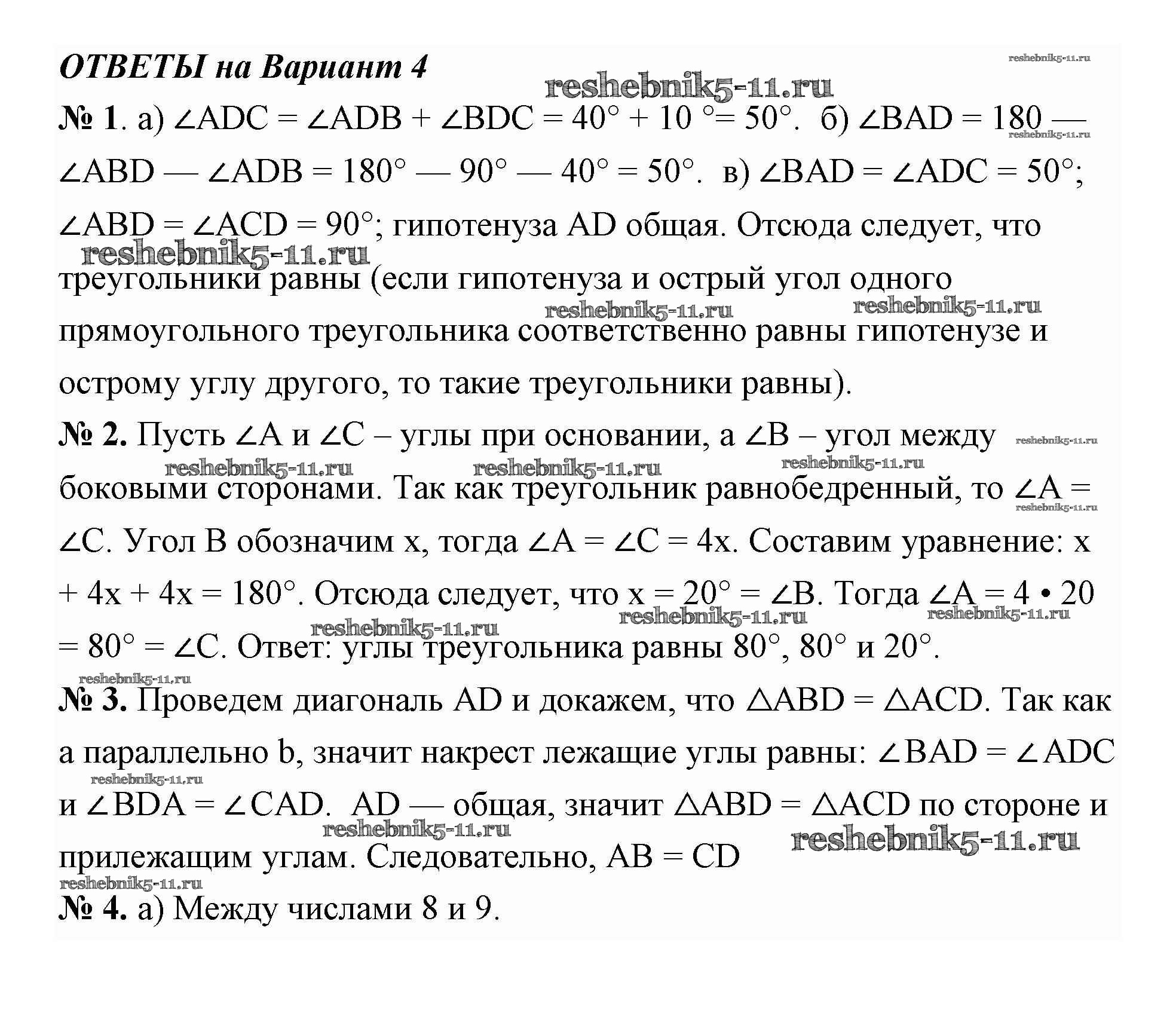 Готовая домашняя работа с ответами по Геометрии за 7 класс Гаврилова Поурочные разработки ВАКО 2020 ФГОС - Итоговые контрольные работы (Варианты) 4