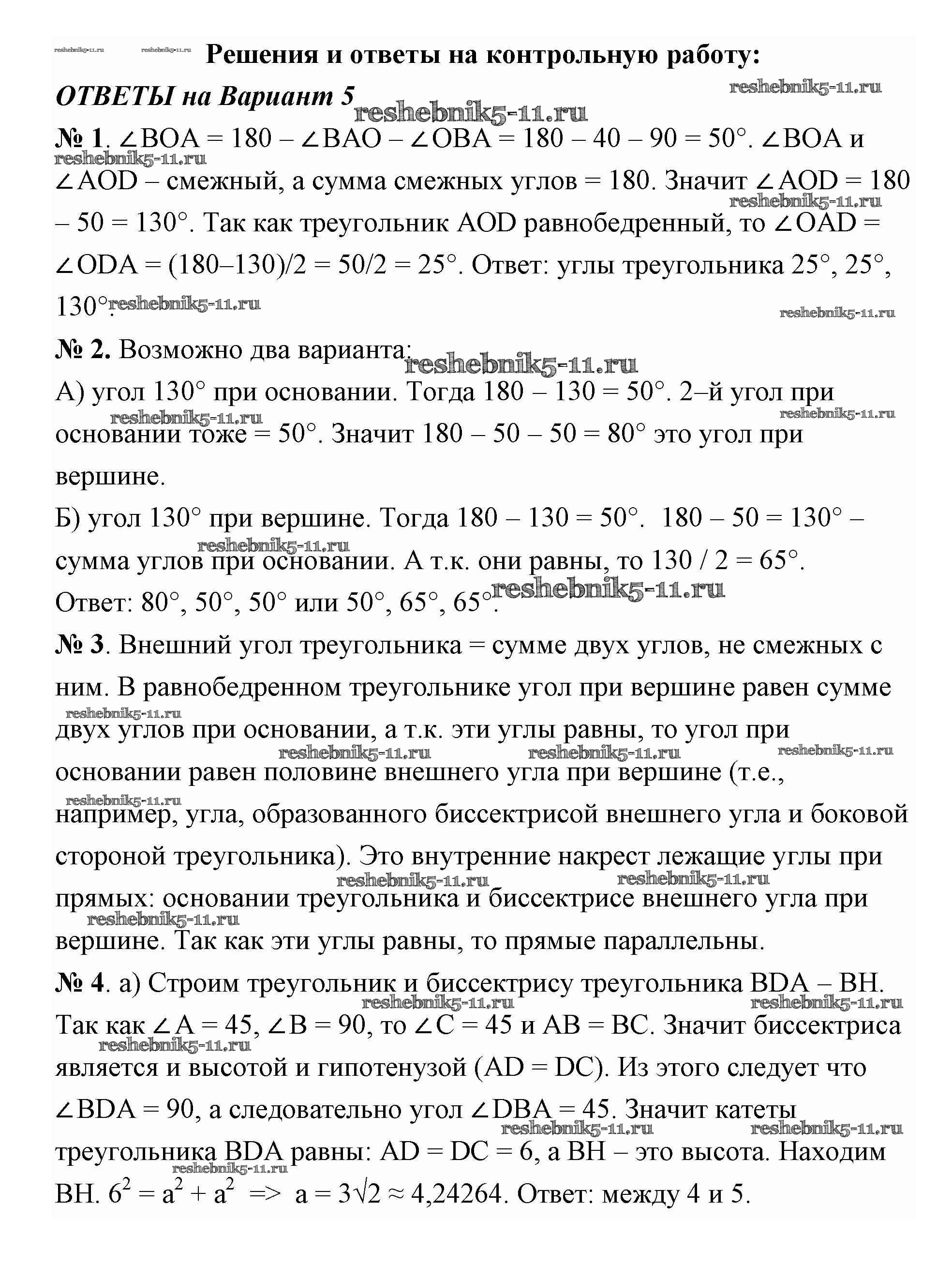 Готовая домашняя работа с ответами по Геометрии за 7 класс Гаврилова Поурочные разработки ВАКО 2020 ФГОС - Итоговые контрольные работы (Варианты) 5