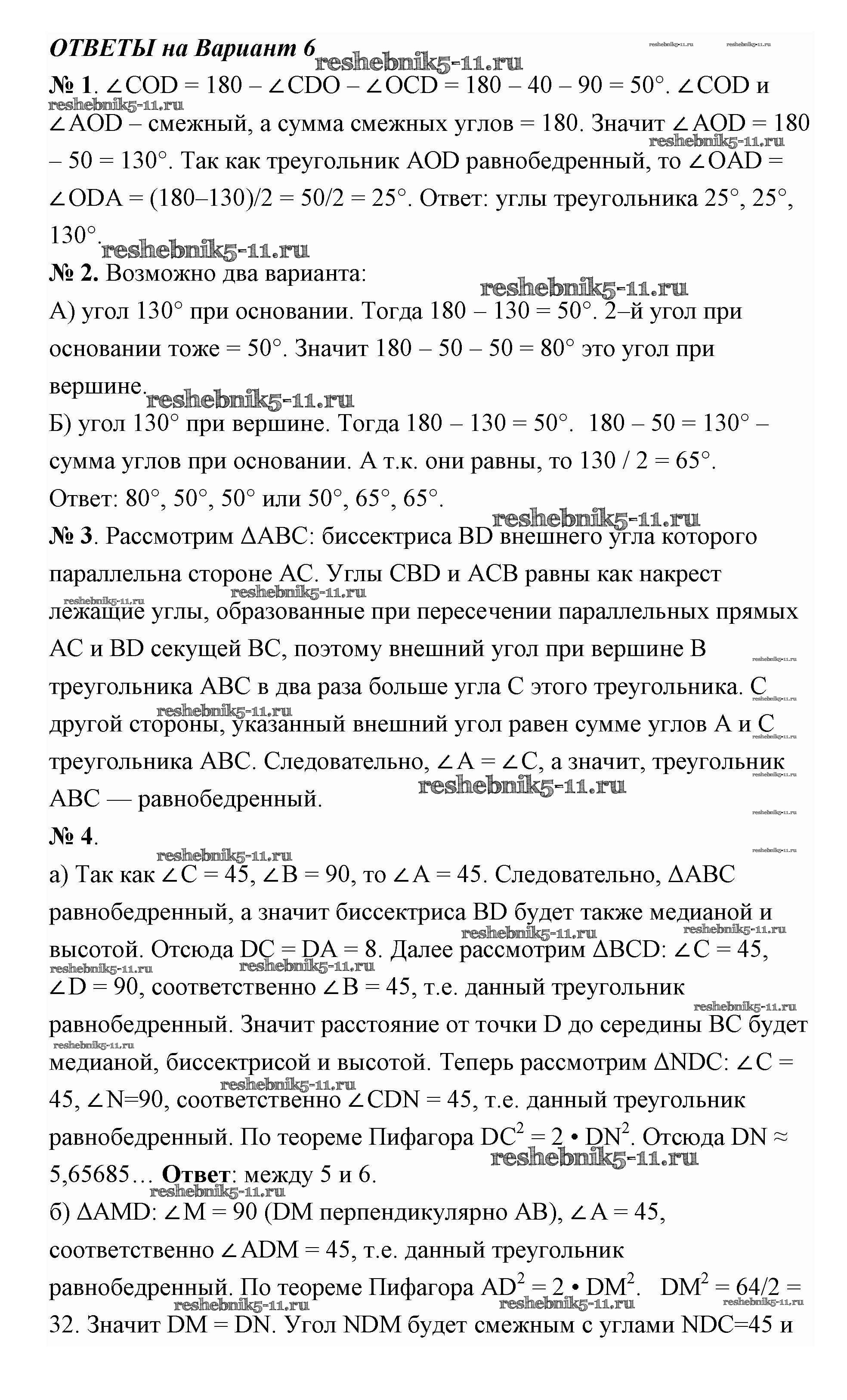 Готовая домашняя работа с ответами по Геометрии за 7 класс Гаврилова Поурочные разработки ВАКО 2020 ФГОС - Итоговые контрольные работы (Варианты) 6