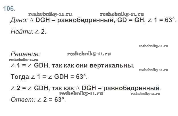 Готовая домашняя работа с ответами по Геометрии за 7 класс Мищенко Рабочая тетрадь УМК Экзамен (рабочие тетради) 2017 ФГОС - Задачи 106