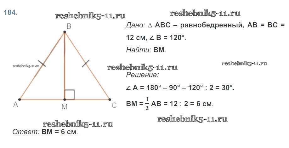 Готовая домашняя работа с ответами по Геометрии за 7 класс Мищенко Рабочая тетрадь УМК Экзамен (рабочие тетради) 2017 ФГОС - Задачи 184