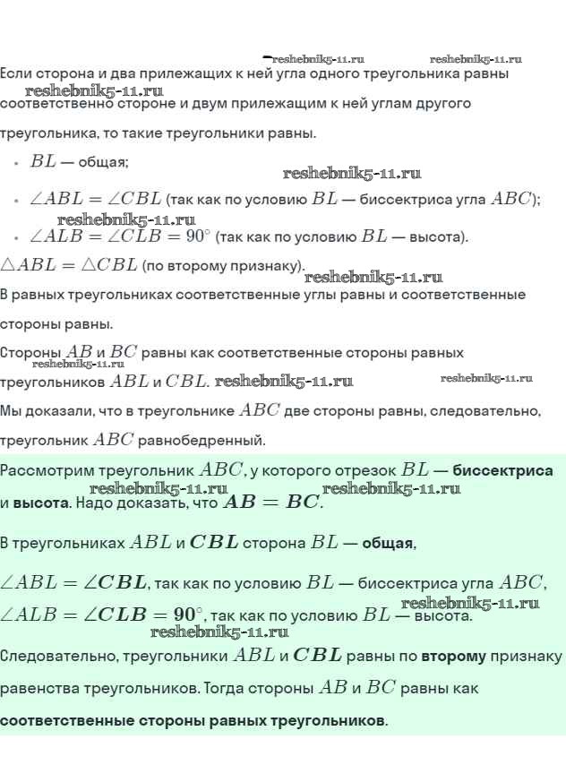 § 7. Равные треугольники. Высота, медиана, биссектриса треугольника