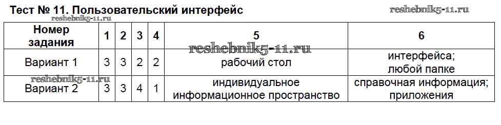 Готовая домашняя работа с ответами по Информатике за 7 класс Масленикова Контрольно-измерительные материалы (КИМ) ВАКО 2017 ФГОС - Тесты Тест №11. Пользовательский интерфейс