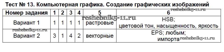 Готовая домашняя работа с ответами по Информатике за 7 класс Масленикова Контрольно-измерительные материалы (КИМ) ВАКО 2017 ФГОС - Тесты Тест №13. Компьютерная графика. Создание графических изображений