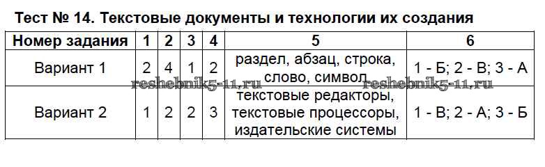 Решебник / тест / тест №14. Текстовые документы и технологии их создания
