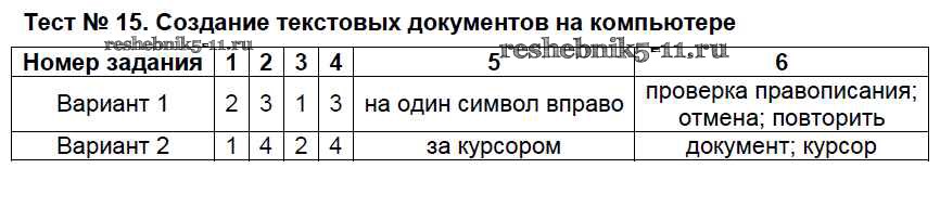 Готовая домашняя работа с ответами по Информатике за 7 класс Масленикова Контрольно-измерительные материалы (КИМ) ВАКО 2017 ФГОС - Тесты Тест №15. Создание текстовых документов на компьютере