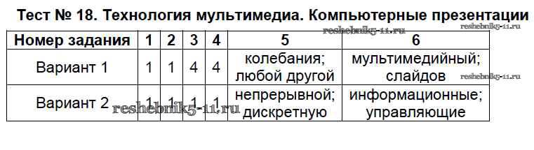 Решебник / тест / тест №18. Технология мультимедиа. Компьютерные презентации