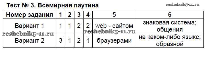 Готовая домашняя работа с ответами по Информатике за 7 класс Масленикова Контрольно-измерительные материалы (КИМ) ВАКО 2017 ФГОС - Тесты Тест №3. Всемирная паутина