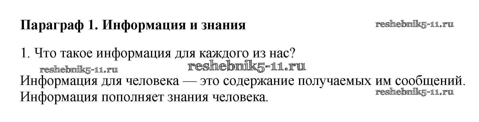 Готовая домашняя работа с ответами по Информатике за 7 класс Семакин, Залогова, Русаков, Шестакова Учебник Бином 2017 ФГОС - § 1. Информация и знания 1