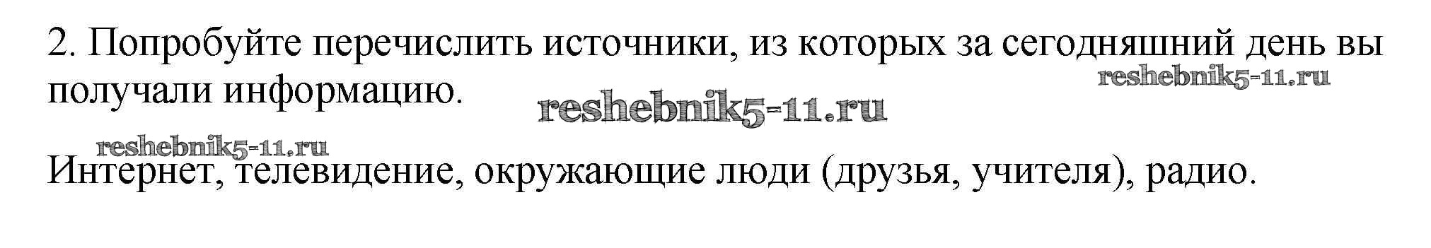 Готовая домашняя работа с ответами по Информатике за 7 класс Семакин, Залогова, Русаков, Шестакова Учебник Бином 2017 ФГОС - § 1. Информация и знания 2