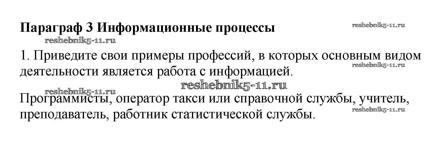 Готовая домашняя работа с ответами по Информатике за 7 класс Семакин, Залогова, Русаков, Шестакова Учебник Бином 2017 ФГОС - § 3. Информационные процессы 1
