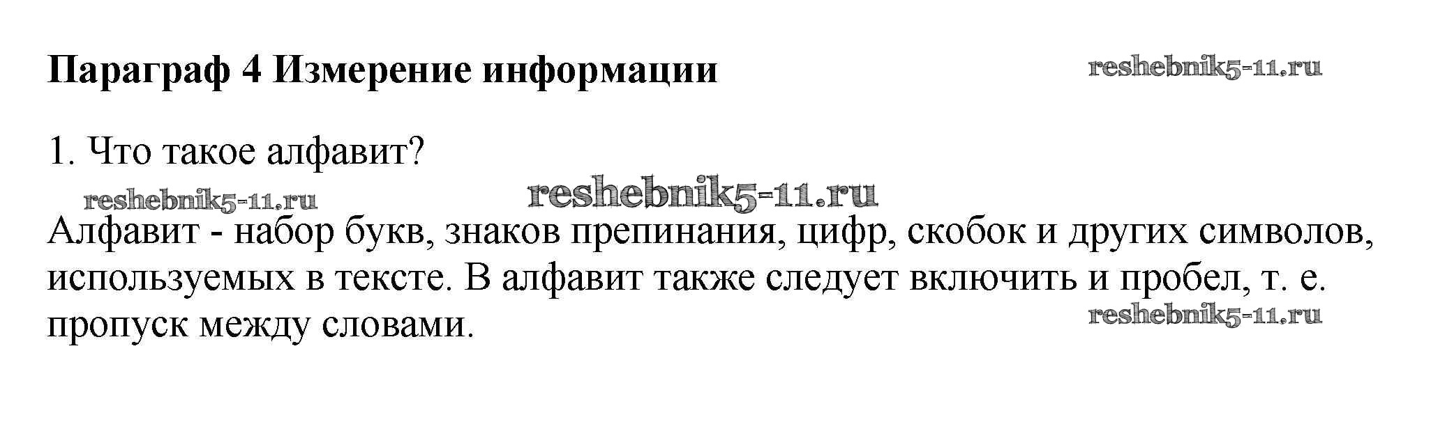 Готовая домашняя работа с ответами по Информатике за 7 класс Семакин, Залогова, Русаков, Шестакова Учебник Бином 2017 ФГОС - § 4. Измерение информации 1
